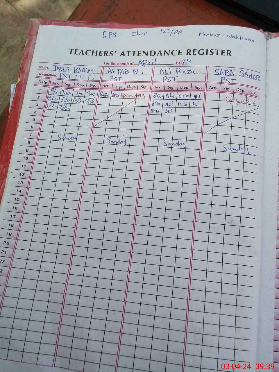 | Name: Ta**** Ka**** Designation: (School Headmaster's/Headmistress's) PST Phone/Cell Number: 03**** |