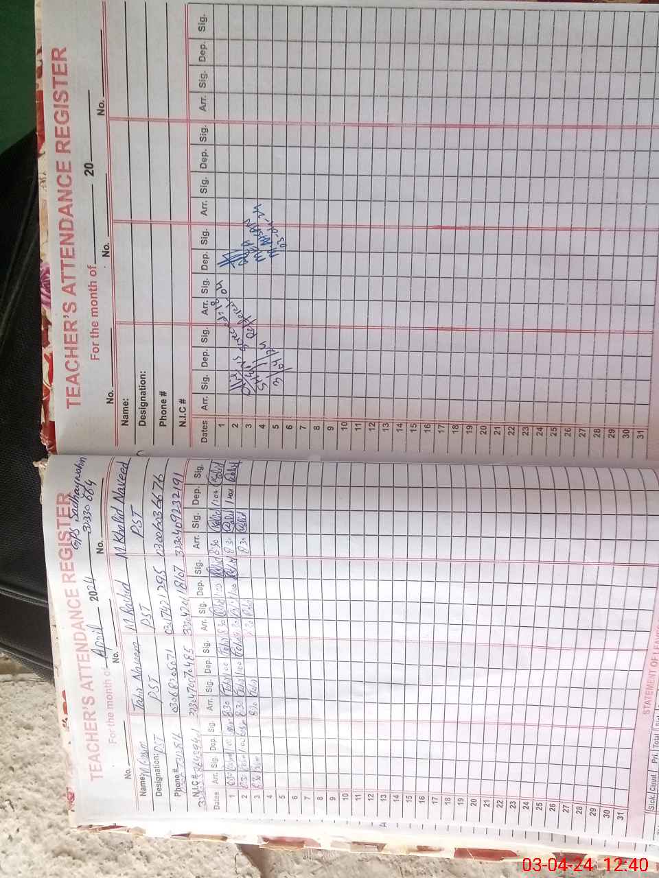 | Name: M.**** Designation: (School Headmaster's/Headmistress's) PST Phone/Cell Number: 03**** |
