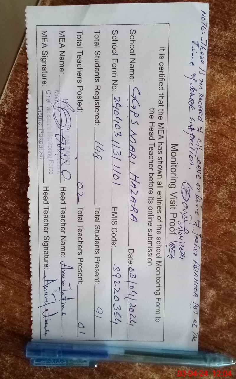 | EMIS Code: 39220364 | Name of School: GGPS MARI HAZARA | |||