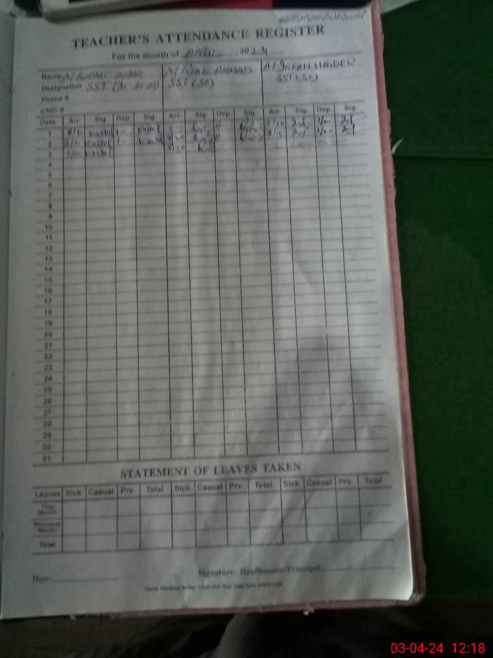 | Name: Kh**** Ma**** Designation: (School Headmaster's/Headmistress's) SR.HM Phone/Cell Number: 03**** |