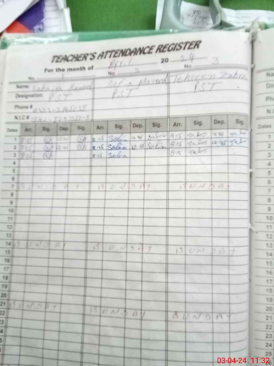 | Name: SA**** HA**** Designation: (School Headmaster's/Headmistress's) PST Head Phone/Cell Number: 03**** |