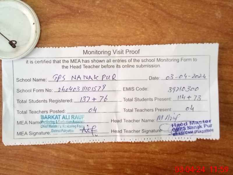| EMIS Code: 39210300 | Name of School: GES NANAK PUR | |||