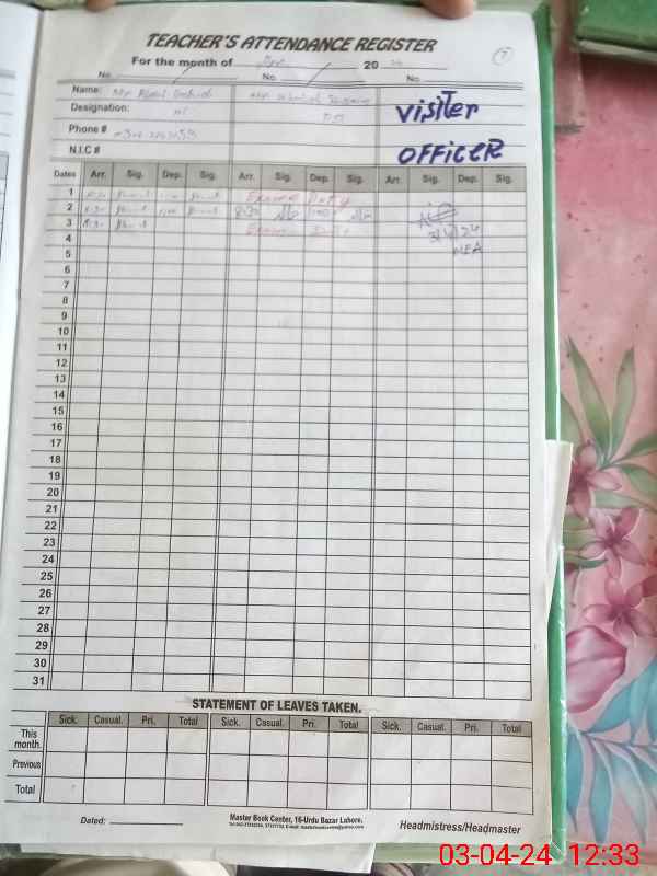 | Name: Kh**** Hu**** Designation: (School Headmaster's/Headmistress's) PST Phone/Cell Number: 03**** |