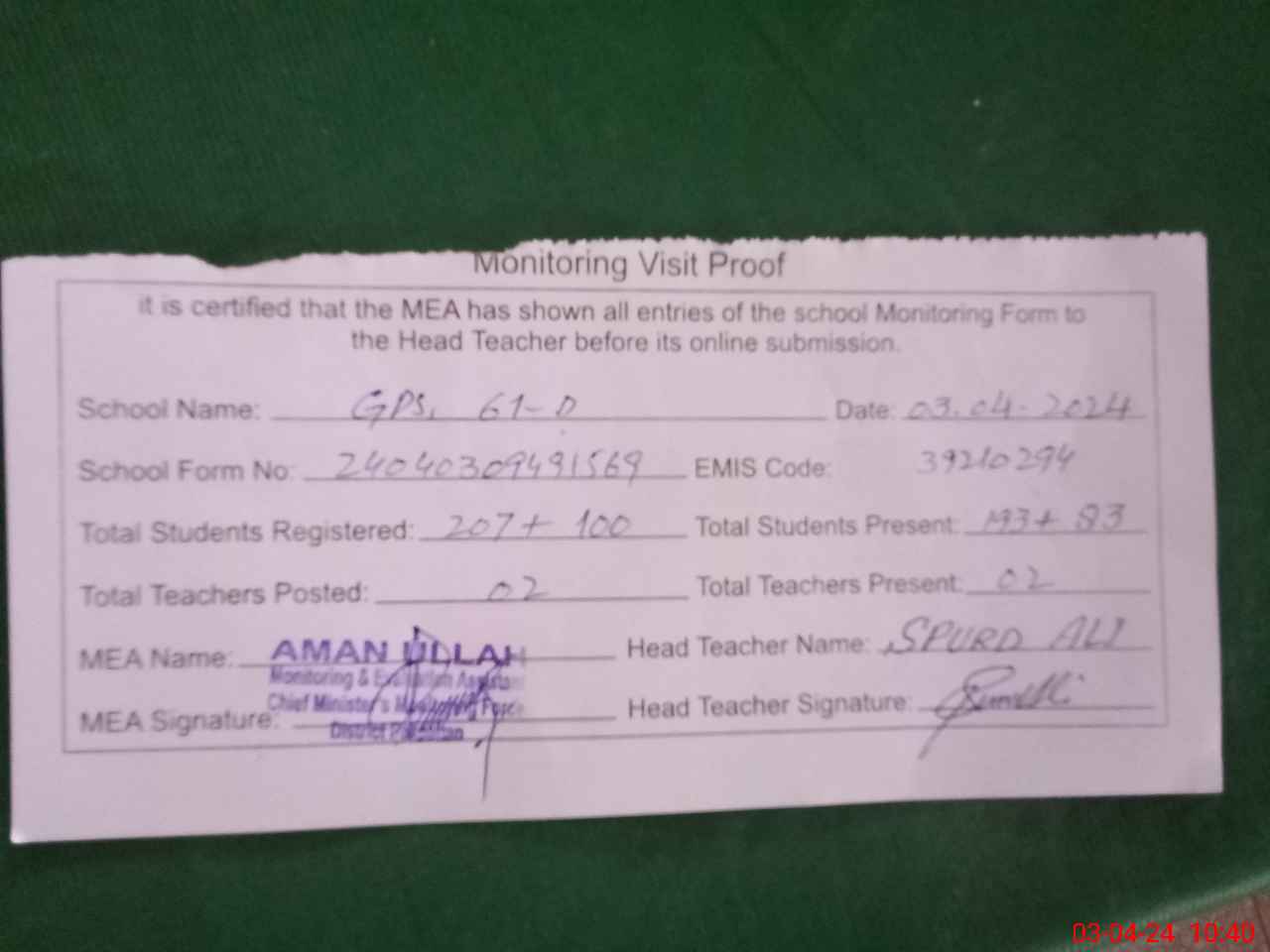 | EMIS Code: 39210294 | Name of School: GPS 61/D | |||