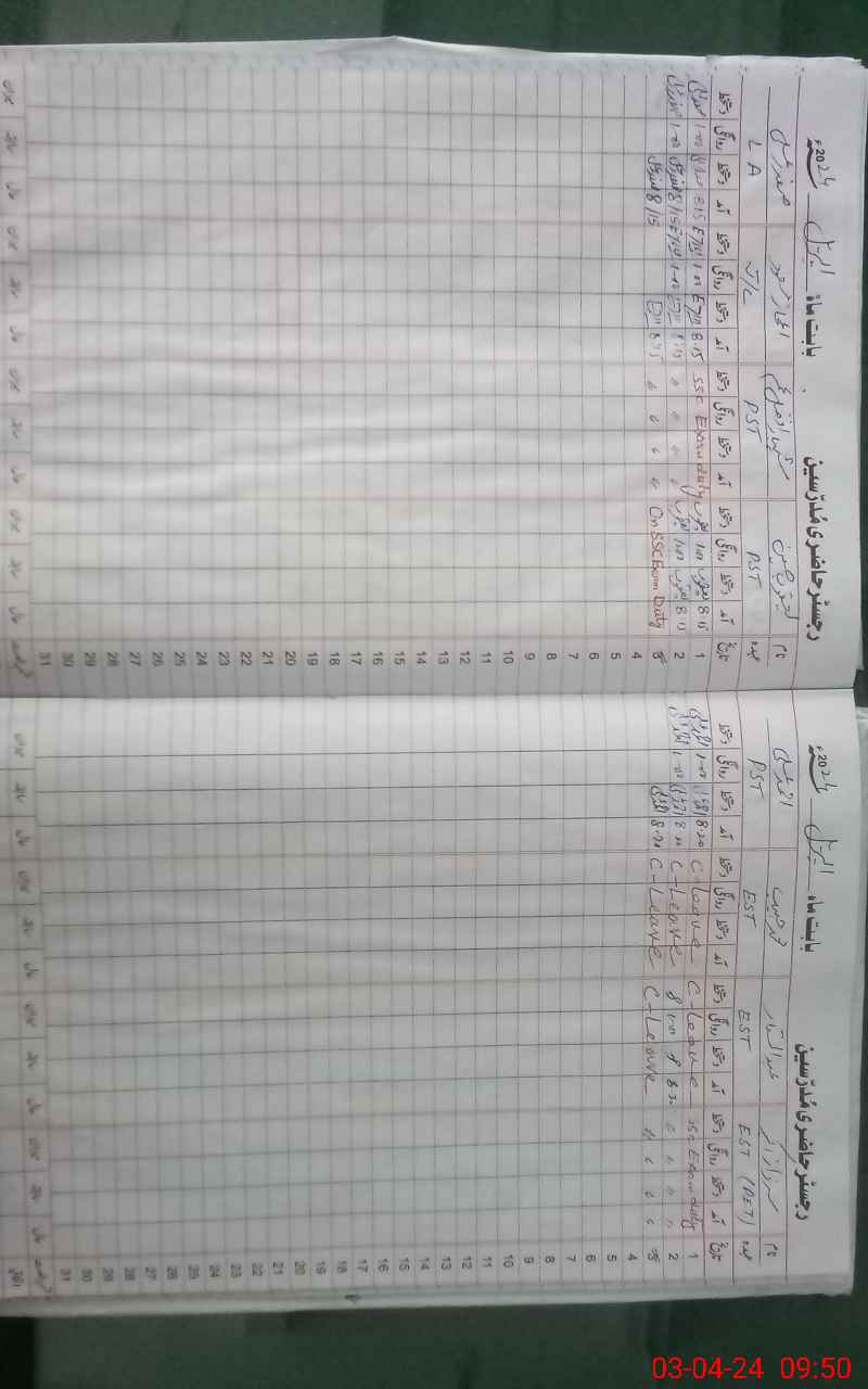 | 35**** | Sh**** Af**** Na**** | 1 | 1 | 0 | 0 | 0 | 0 | 0 | 0 | 0 | 0 | 0 | Exam Duty |