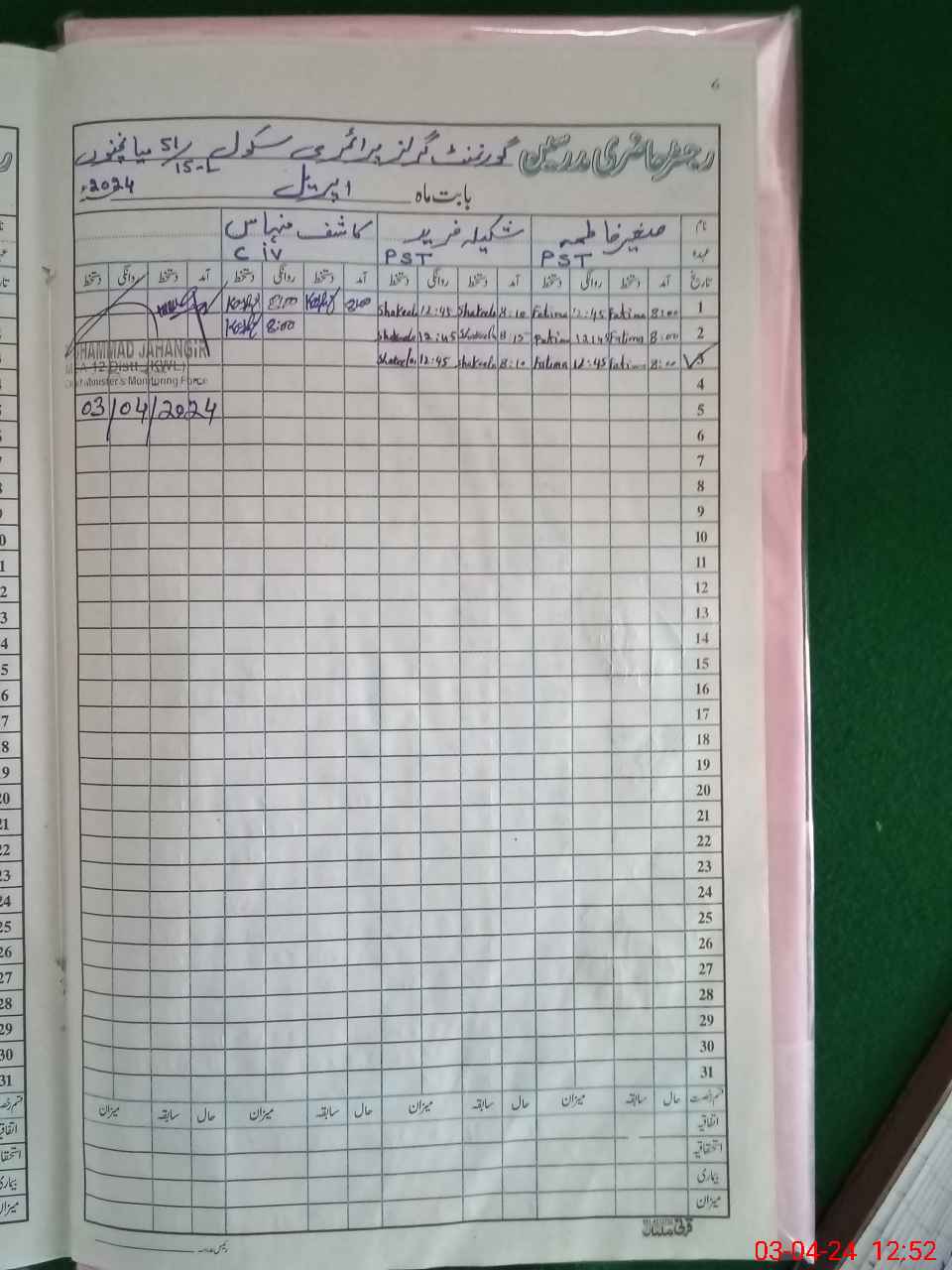 | Name: Sa**** Fa**** Designation: (School Headmaster's/Headmistress's) PST Phone/Cell Number: 03**** |