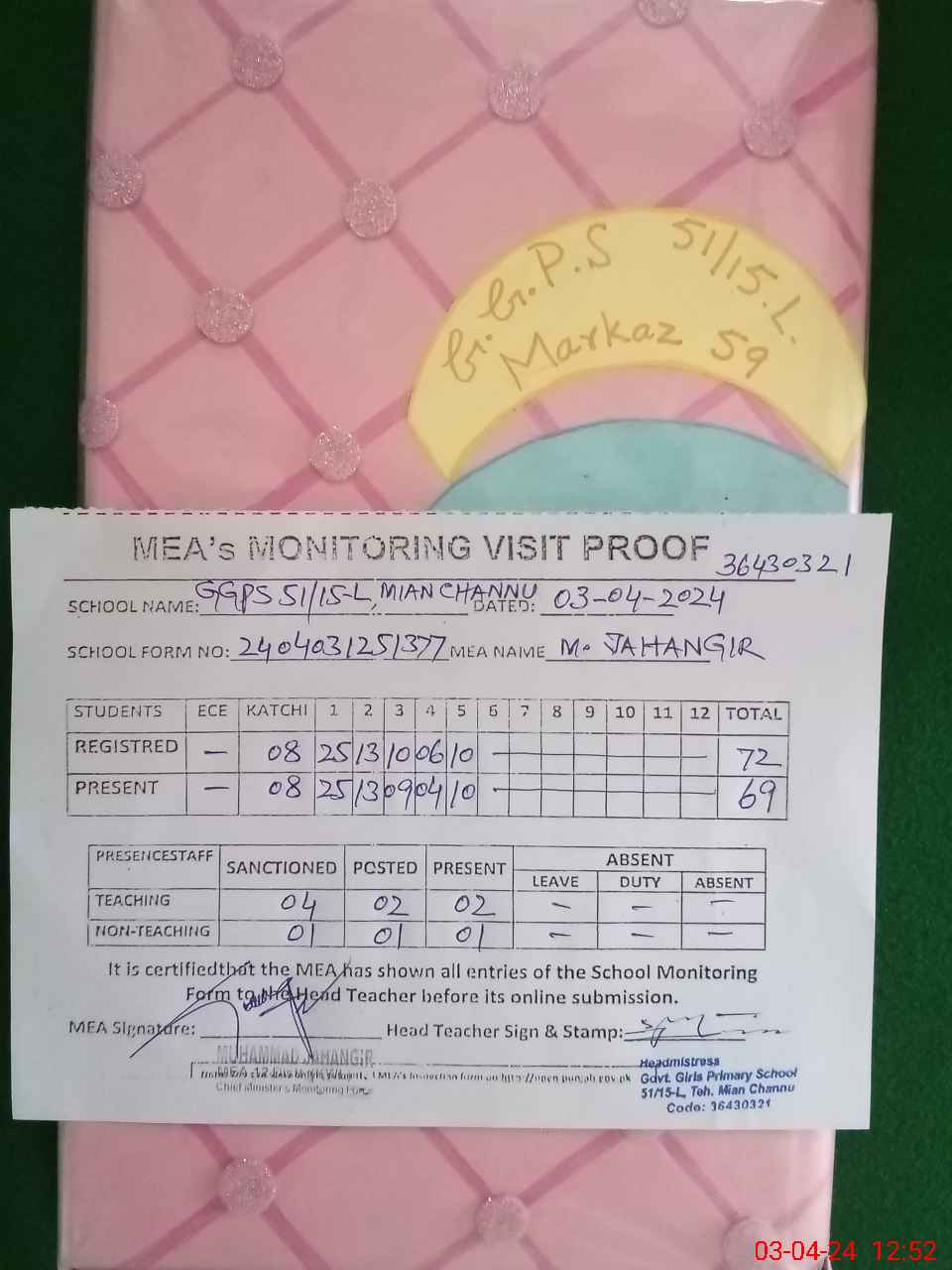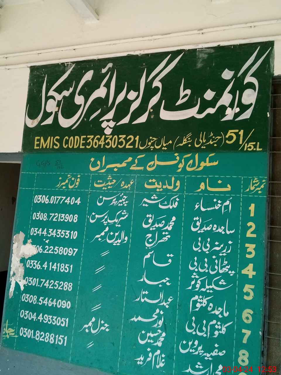 | EMIS Code: 36430321 | Name of School: GGPS 51/15-L, MIAN CHANNU | |||