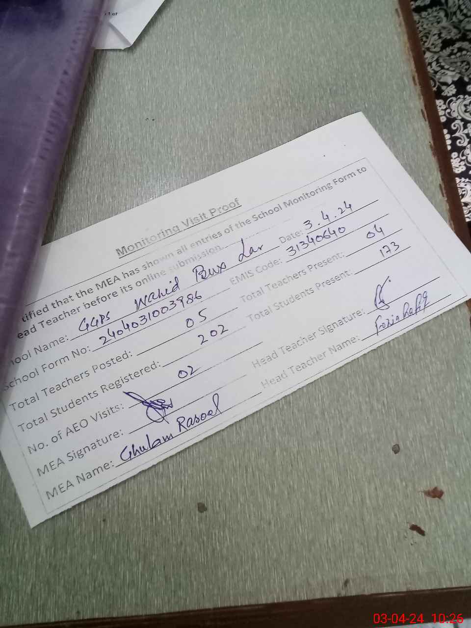 | EMIS Code: 31340640 | Name of School: GGPS WIHID BUX LAR | |||