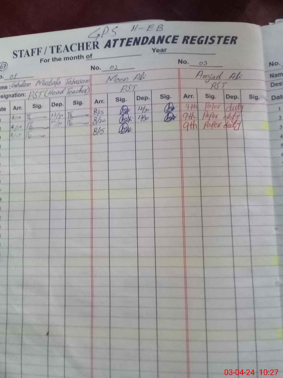 | Name: SH**** FA**** Designation: (School Headmaster's/Headmistress's) PST Phone/Cell Number: 03**** |