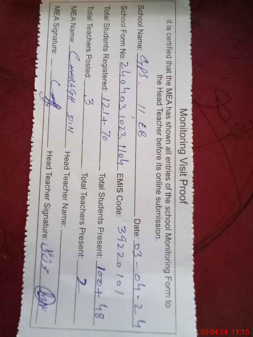 | EMIS Code: 39220101 | Name of School: GPS 11 EB | |||