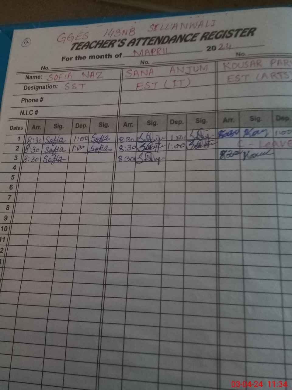 | Name: Sa**** Na**** Designation: (School Headmaster's/Headmistress's) SST Sci Phone/Cell Number: 03**** |