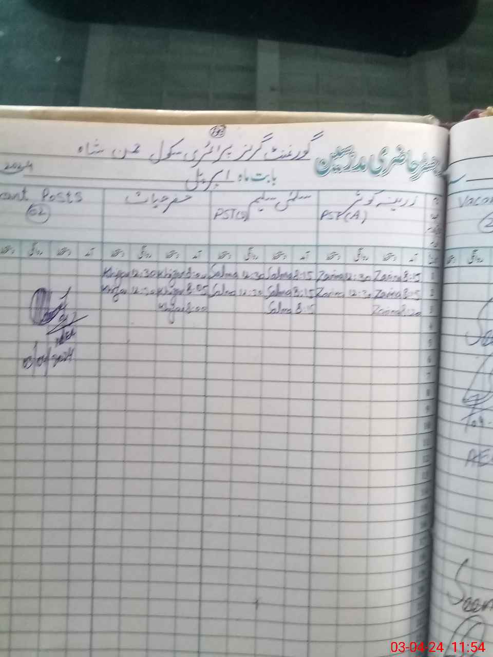 | Name: ZA**** KO**** Designation: (School Headmaster's/Headmistress's) PST Phone/Cell Number: 03**** |