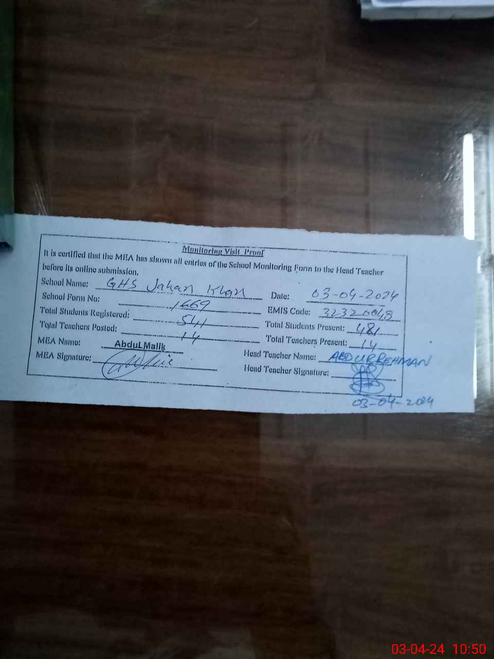 | EMIS Code: 32320048 | Name of School: GHS JAHAN KHAN | |||