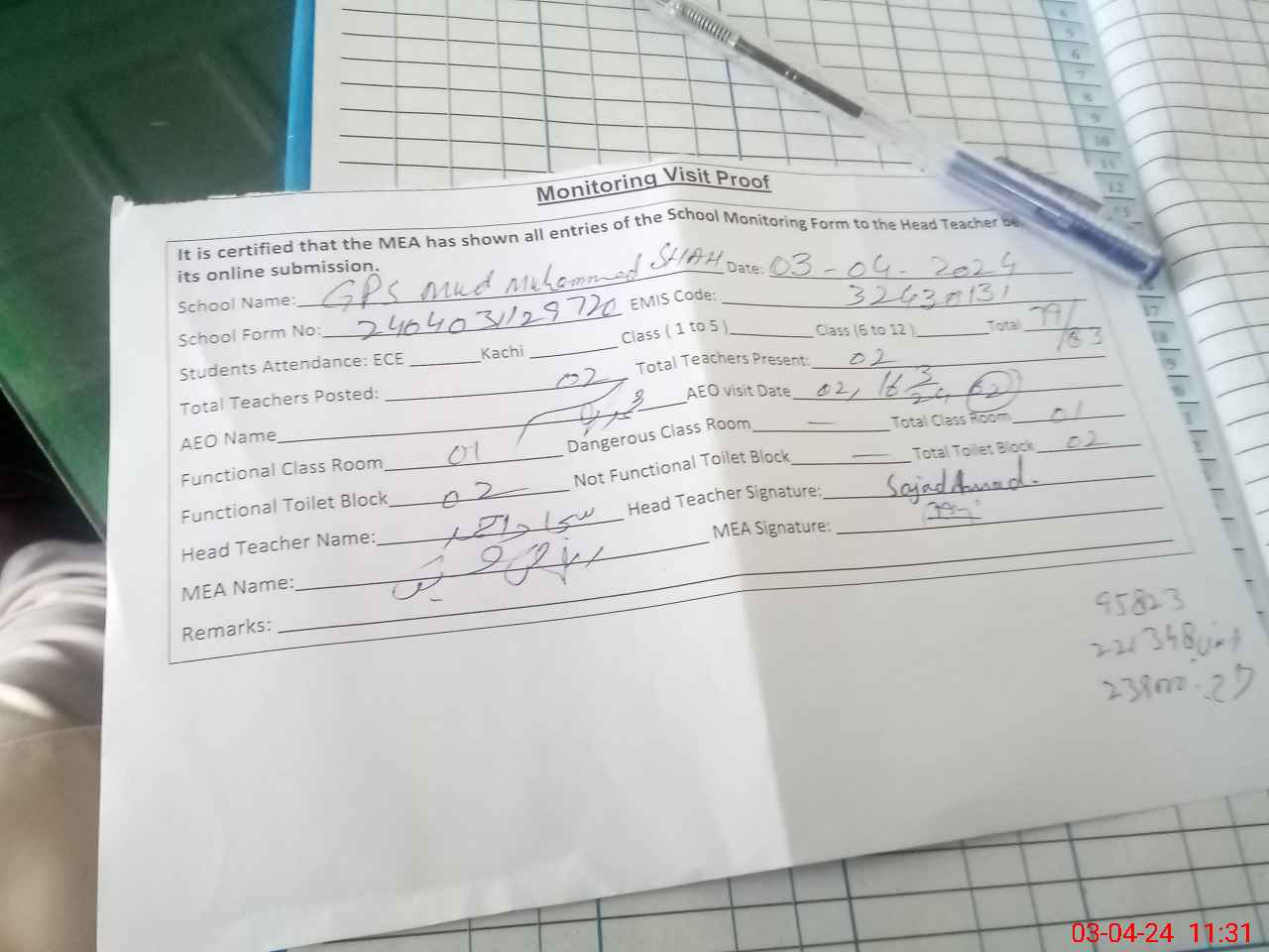 | EMIS Code: 32430131 | Name of School: GPS MUD MUHAMMAD SHAH | |||