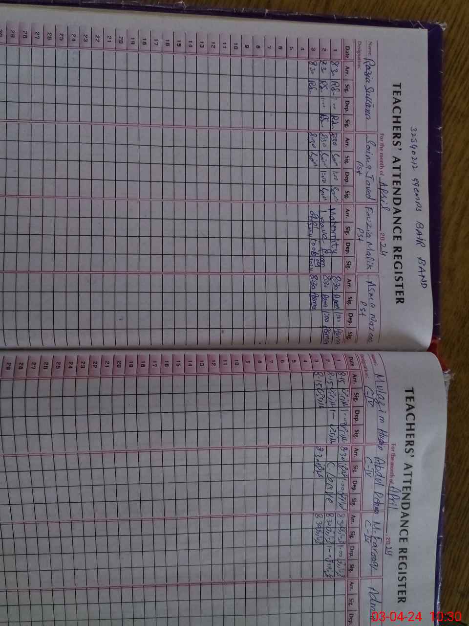 | CNIC | Full Name | Designation | R/C | Absence During Last Calender Month |