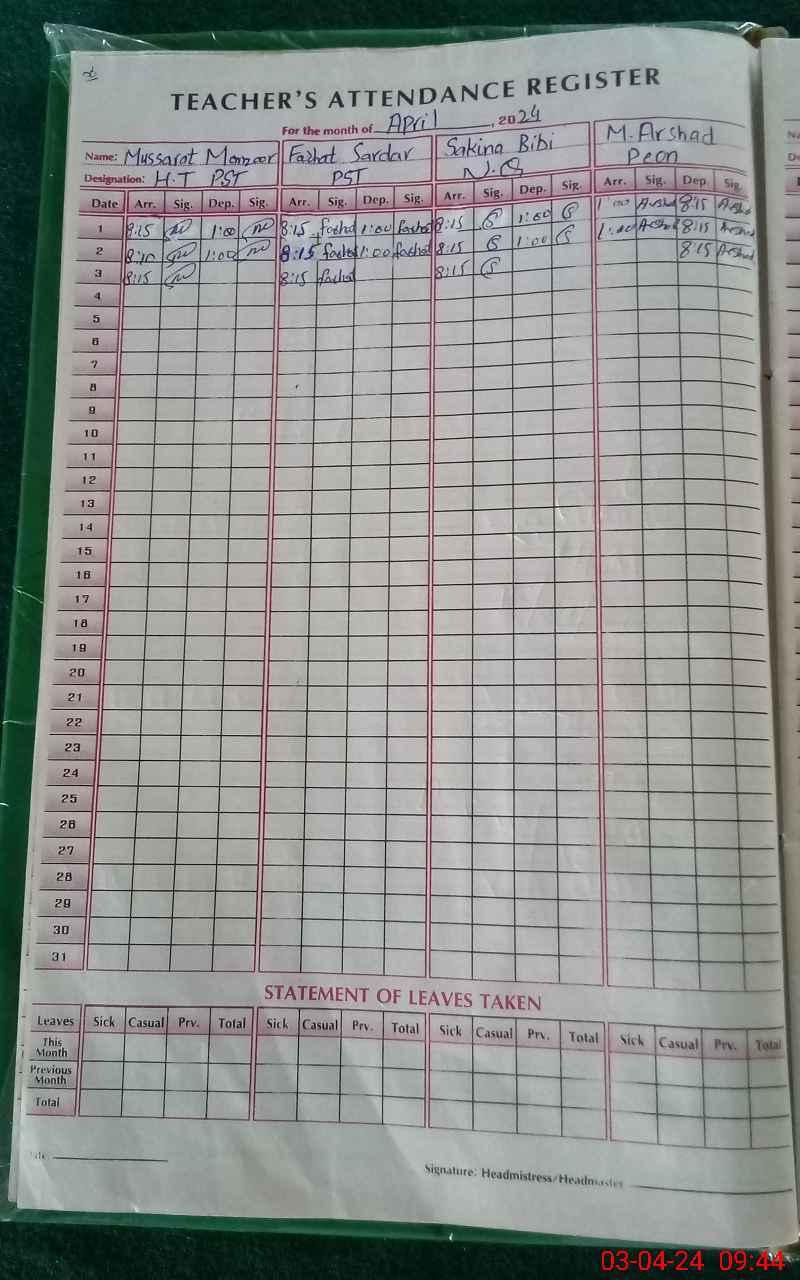 | Name: MU**** MA**** Designation: (School Headmaster's/Headmistress's) PST Phone/Cell Number: 03**** |