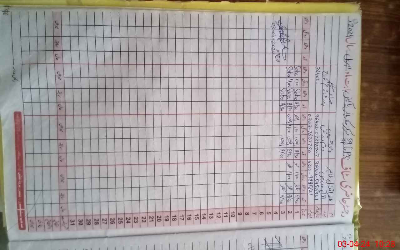 | CNIC | Full Name | Designation | R/C | Absence During Last Calender Month |