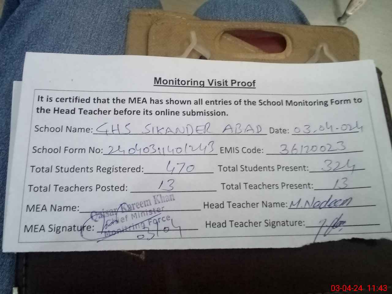| EMIS Code: 36120023 | Name of School: GHS SIKANDER ABAD | |||