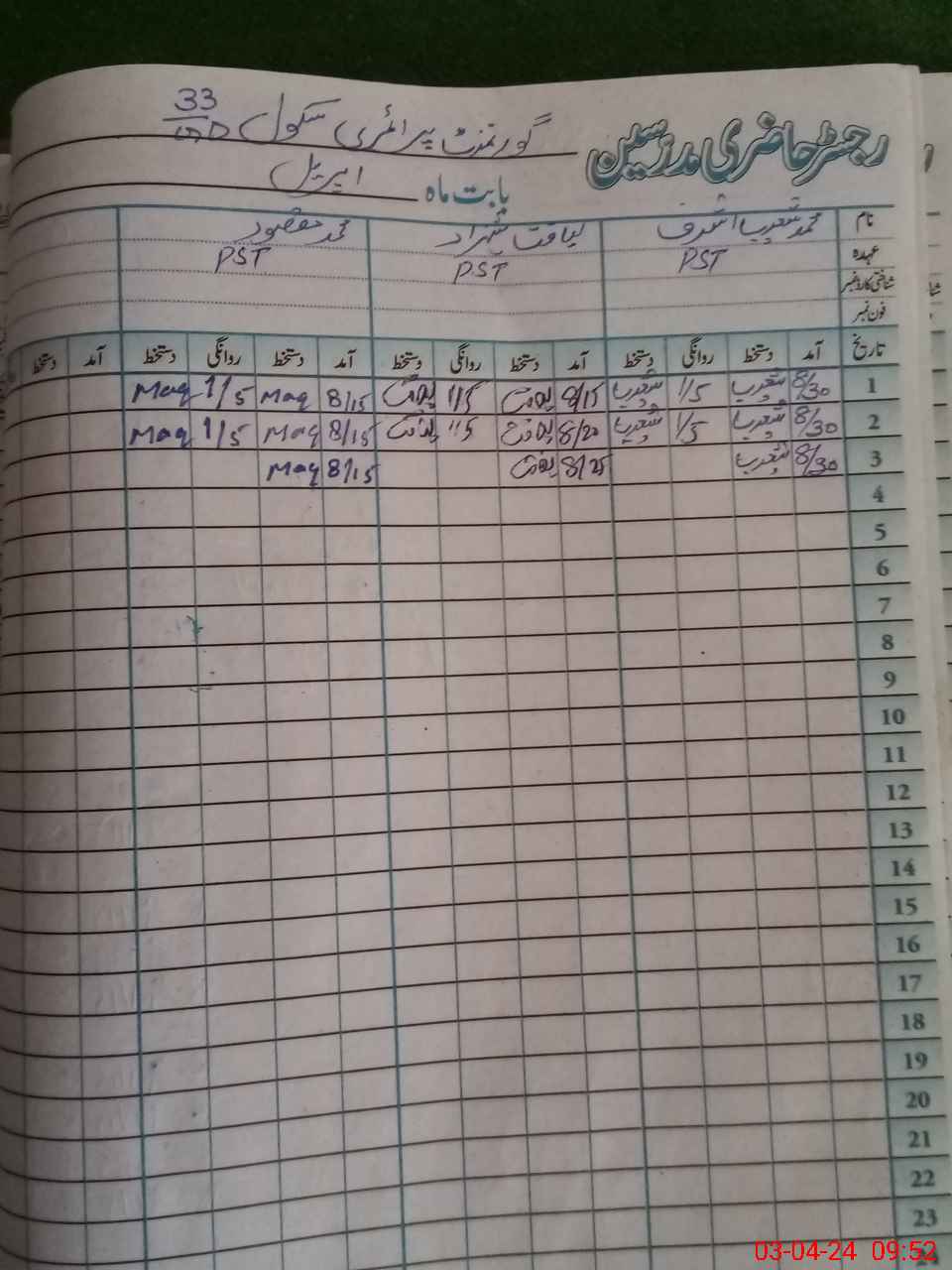 | Name: Mu**** Sh**** Designation: (School Headmaster's/Headmistress's) PST Phone/Cell Number: 03**** |