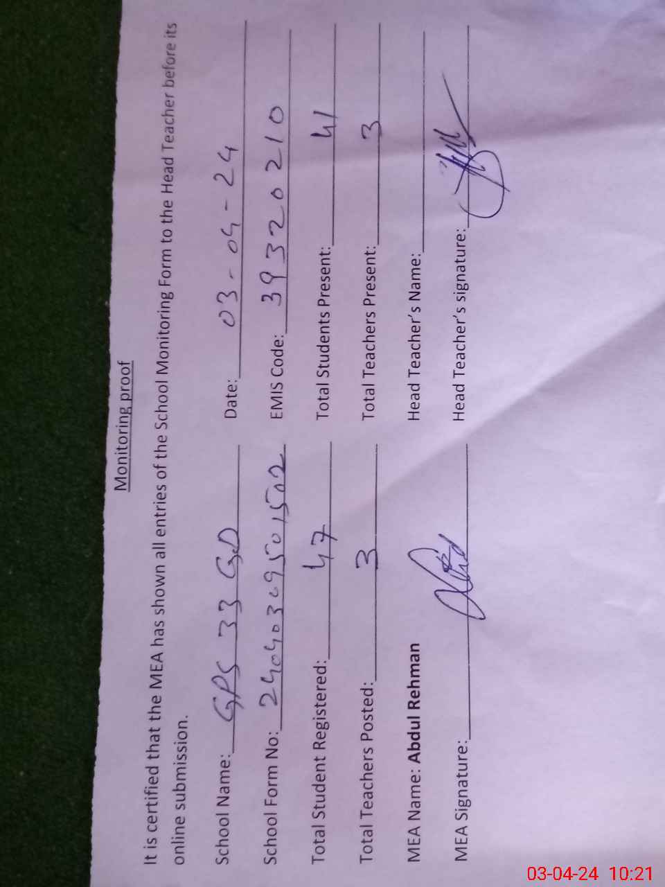 | EMIS Code: 39320210 | Name of School: GPS CHAK 33/G.D | |||