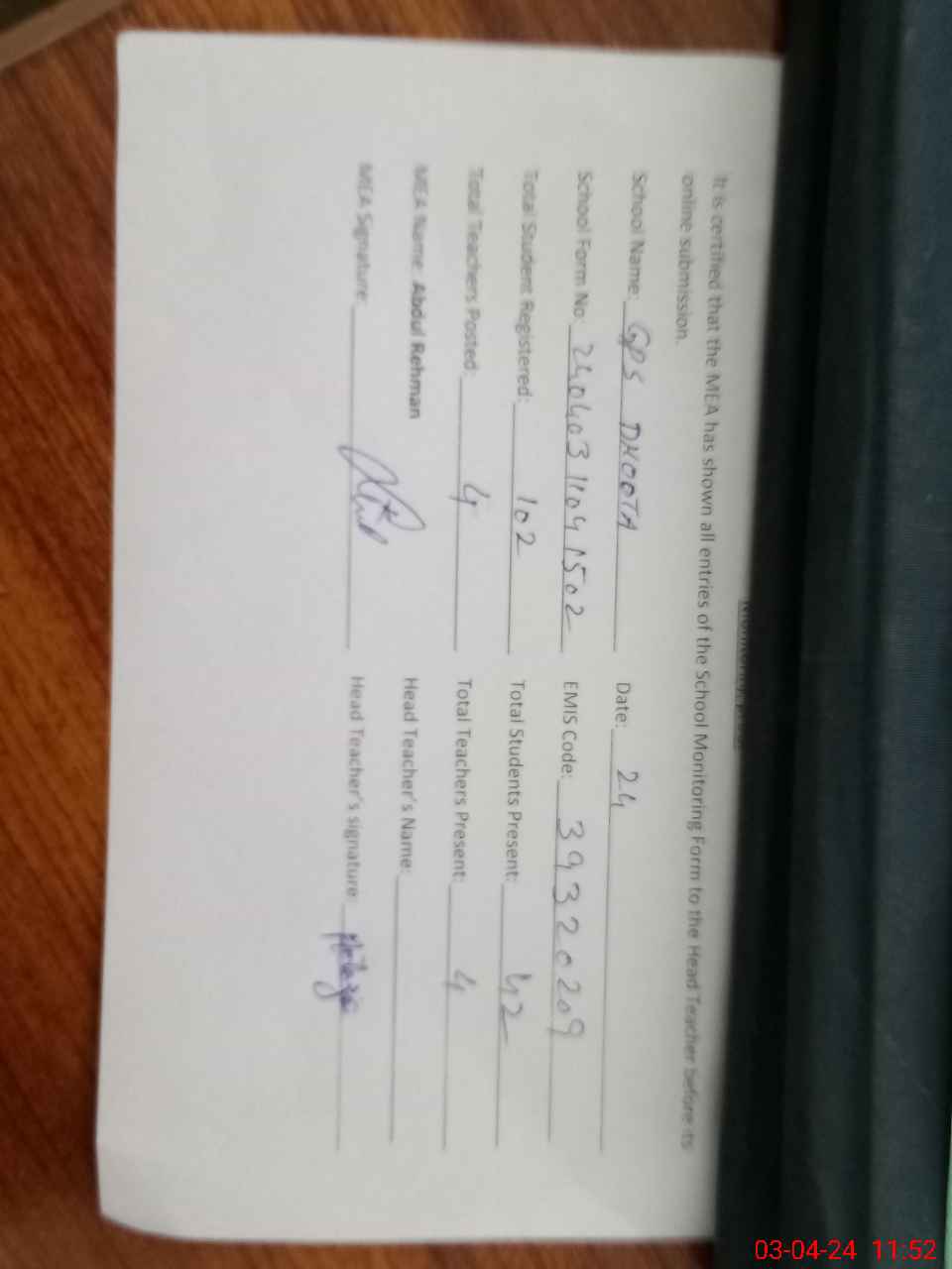 | EMIS Code: 39320209 | Name of School: GPS DHOOTA | |||