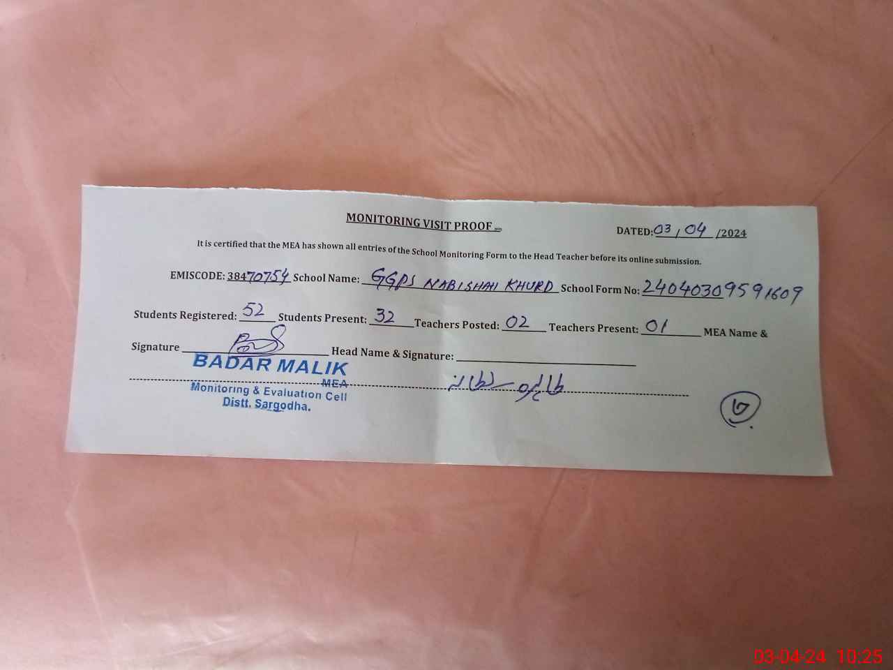 | EMIS Code: 38470754 | Name of School: GGPS NABI SHAH KHURD | |||