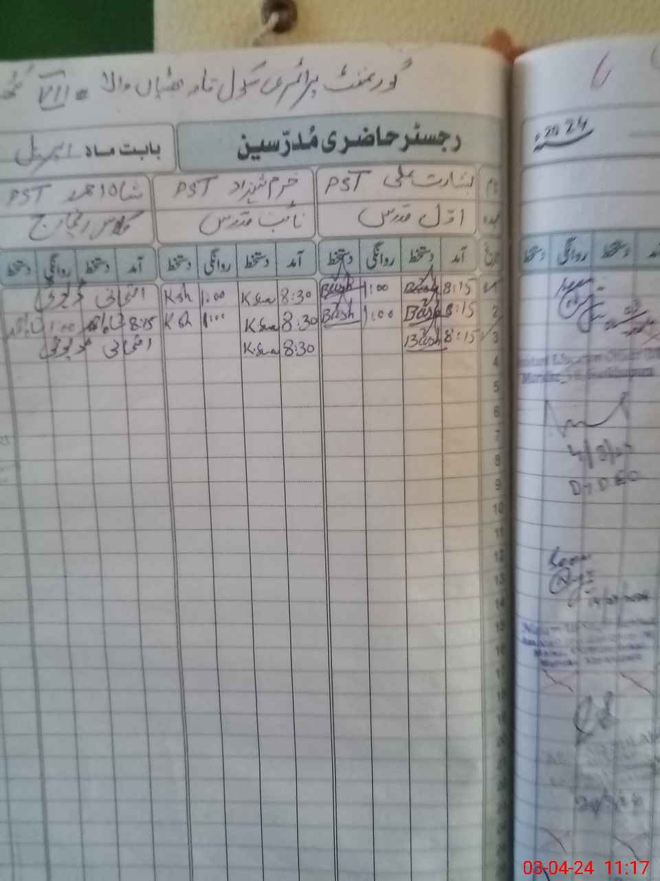 | Name: Kh**** Sh**** Designation: (School Headmaster's/Headmistress's) PST Phone/Cell Number: 03**** |