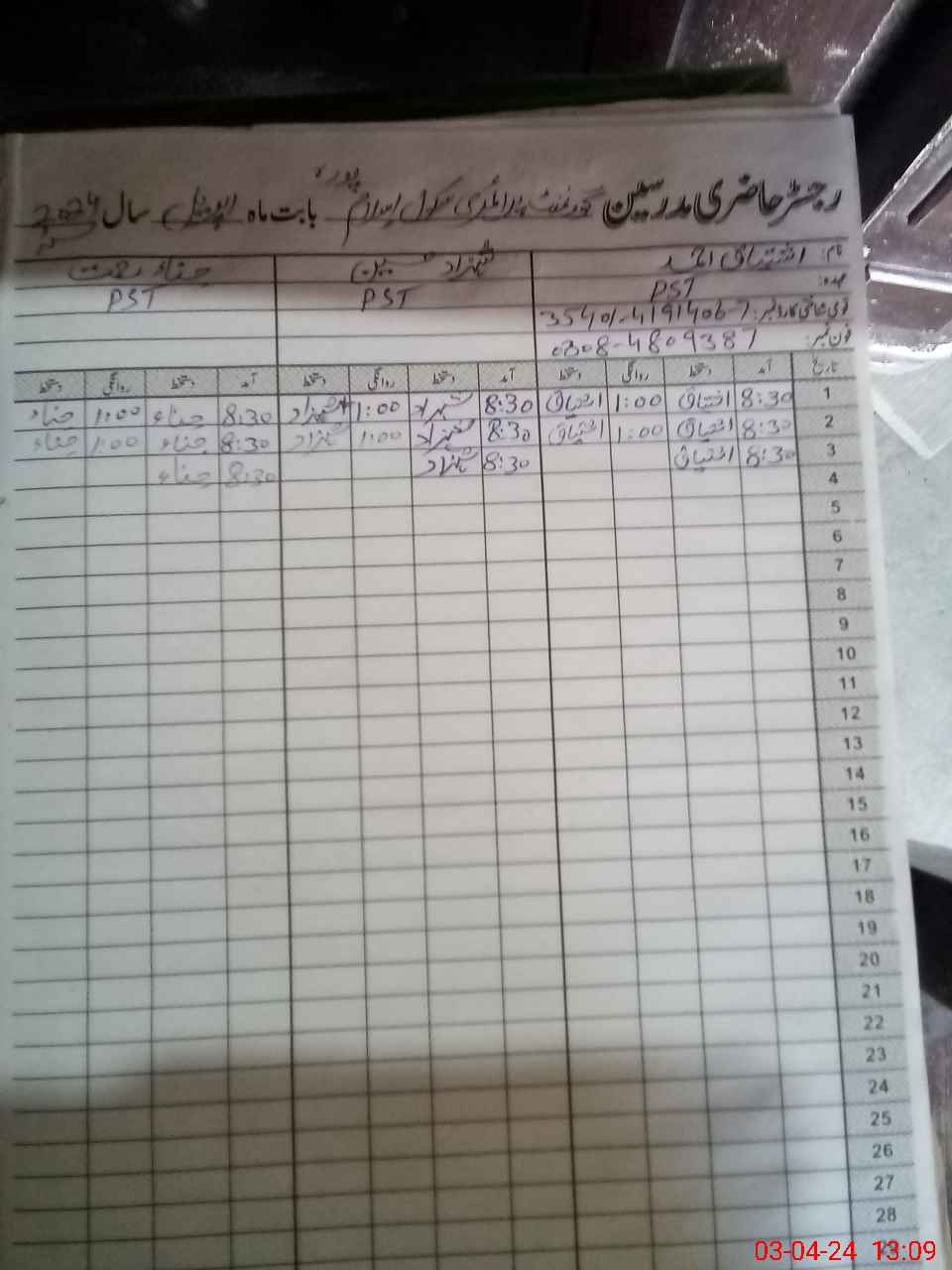 | Name: SH**** HU**** Designation: (School Headmaster's/Headmistress's) PST Phone/Cell Number: 03**** |