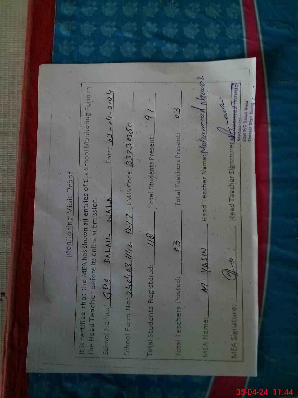 | EMIS Code: 33230250 | Name of School: GPS DALAIL WALA | |||