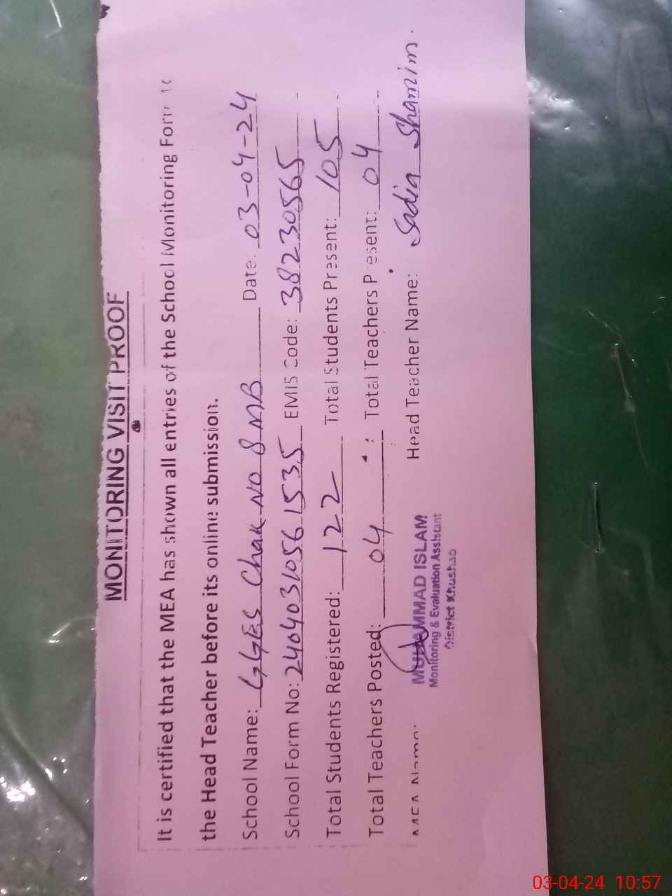 | EMIS Code: 38230565 | Name of School: GGES CHAK NO.8 MB | |||