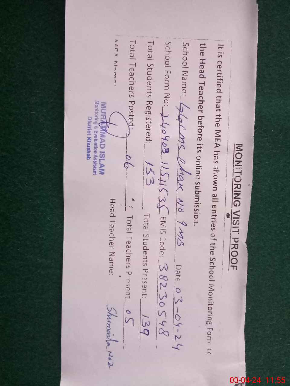 | EMIS Code: 38230548 | Name of School: GGCMS CHAK NO. 9 MB | |||