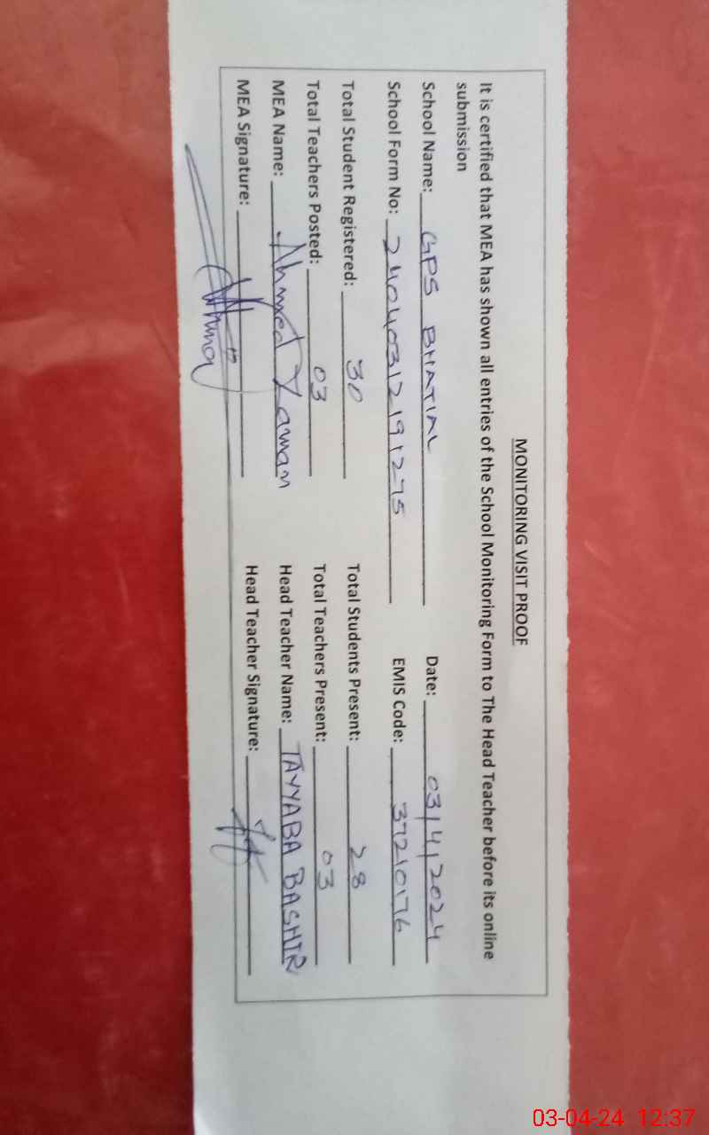 | EMIS Code: 37210176 | Name of School: GPS BHATIAL | |||