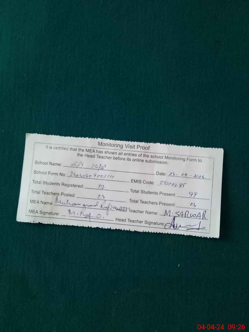 | EMIS Code: 39210285 | Name of School: GPS CHAK NO. 24/SP | |||