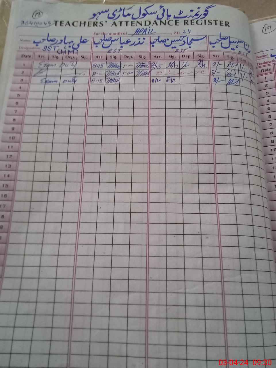 | 36**** | Ab**** Ra**** | 3 | 1 | 0 | 0 | 0 | 0 | 0 | 0 | 0 | 0 | 0 | Exam Duty |