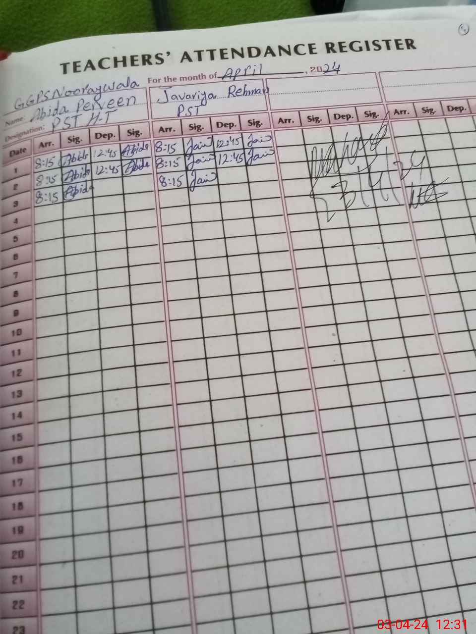 | Name: AB**** PE**** Designation: (School Headmaster's/Headmistress's) PST Phone/Cell Number: 03**** |