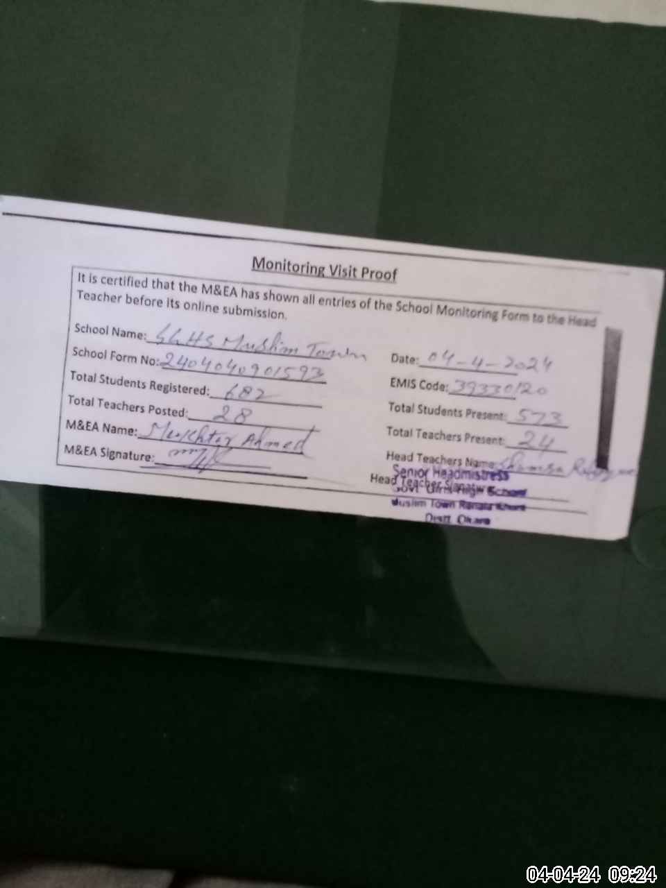 | EMIS Code: 39330120 | Name of School: GGHS MC MUSLIM TOWN RENALA KHURD | |||