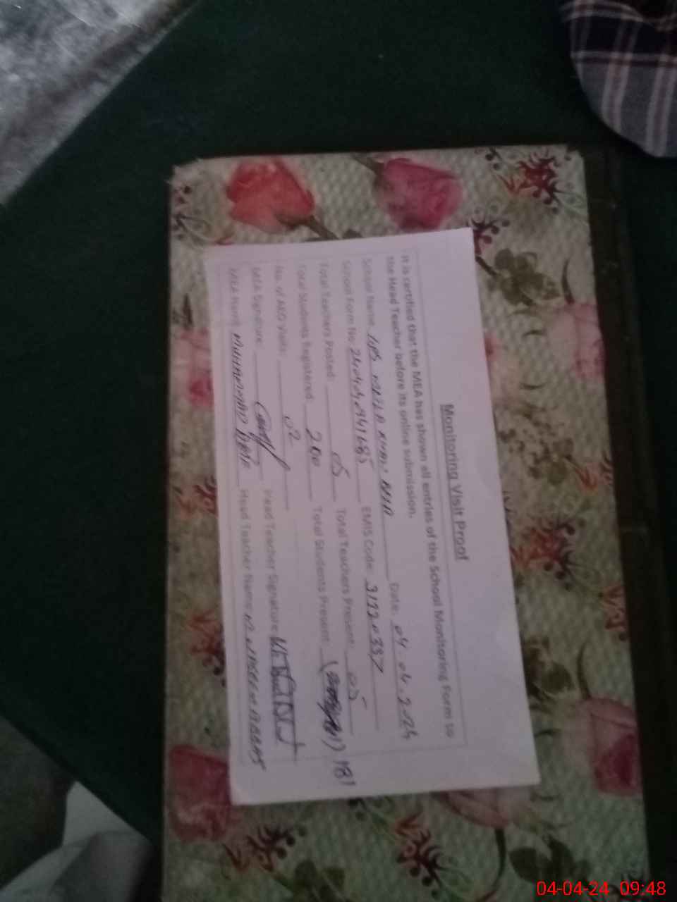 | EMIS Code: 31320337 | Name of School: GPS BASTI METLA P.O KHAN BELLA | |||
