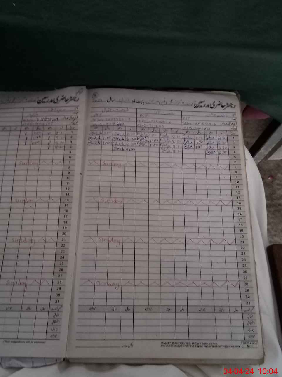 | CNIC | Full Name | Designation | R/C | Absence During Last Calender Month |