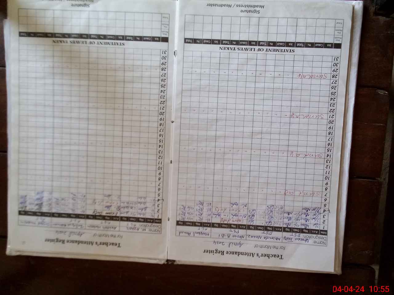 | Leave | Duty | Absent | Maternity | Medical | Ex- Pak |