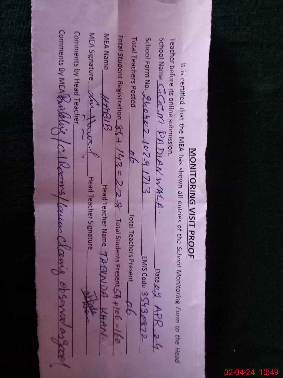 | EMIS Code: 35430872 | Name of School: GGCMS PADIAN WALA | |||