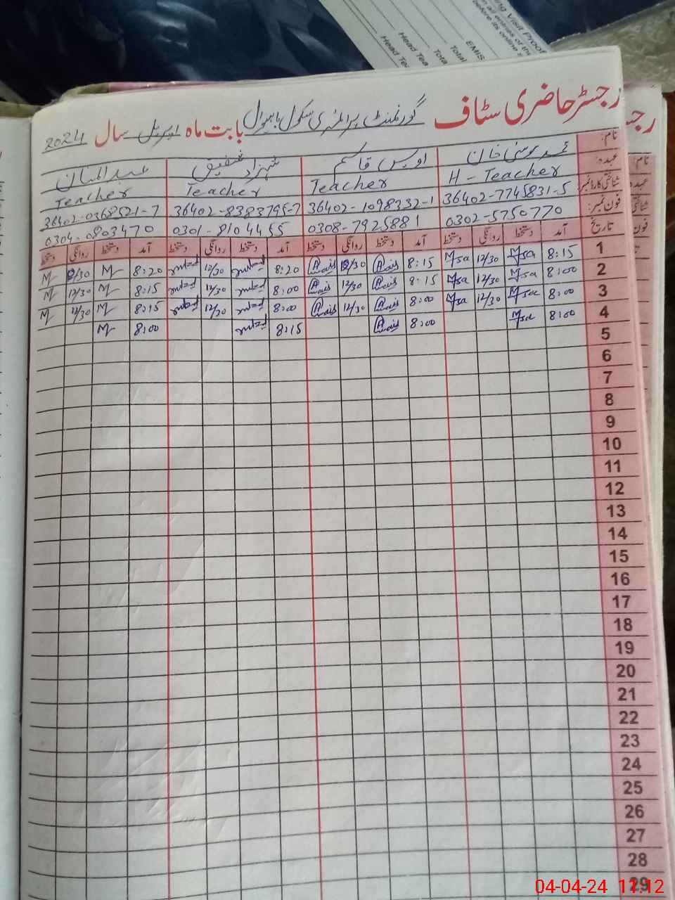 | Name: Mu**** Mo**** Kh**** Designation: (School Headmaster's/Headmistress's) PST Phone/Cell Number: 03**** |