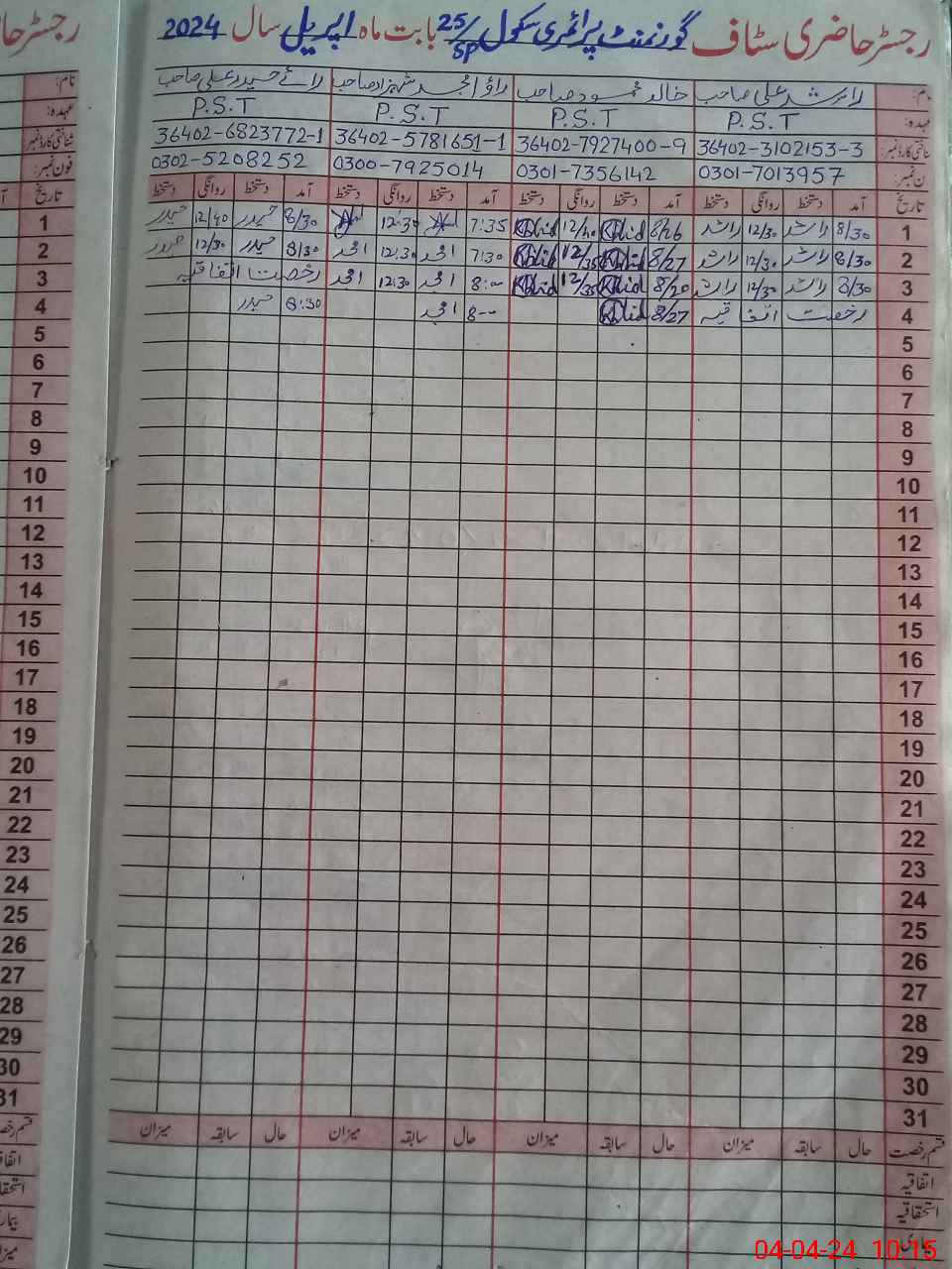 | Name: RA**** AL**** Designation: (School Headmaster's/Headmistress's) PST Phone/Cell Number: 03**** |