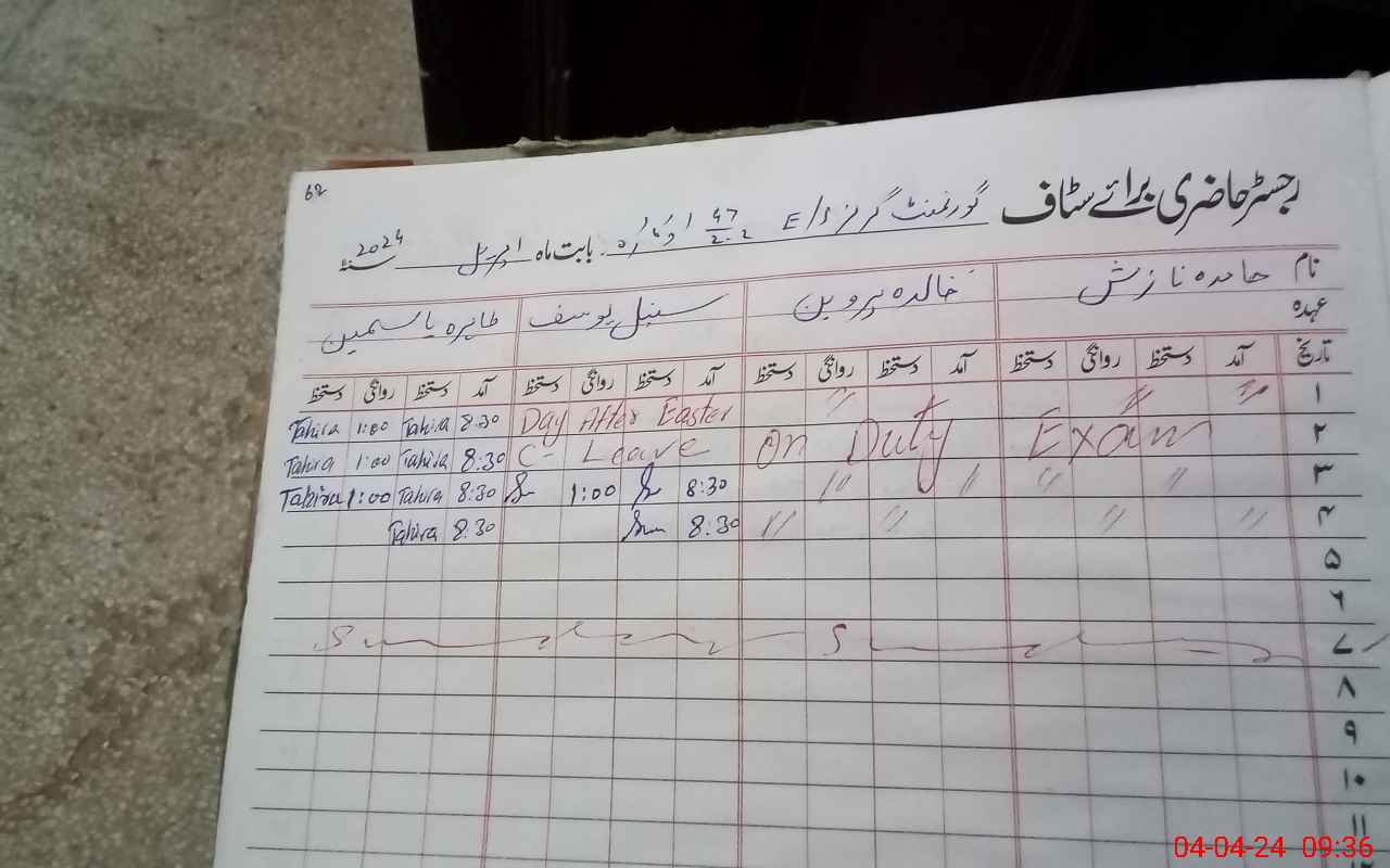 | 35**** | Kh**** Pa**** | 3 | 1 | 0 | 0 | 0 | 0 | 0 | 0 | 0 | 0 | 0 | Exam Duty |