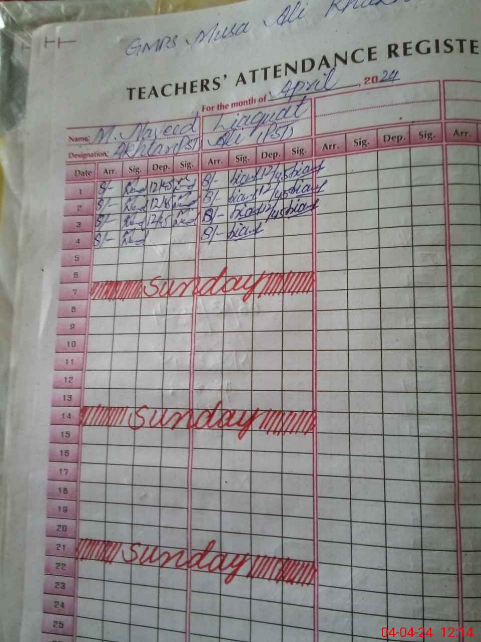 | CNIC | Full Name | Designation | R/C | Absence During Last Calender Month |