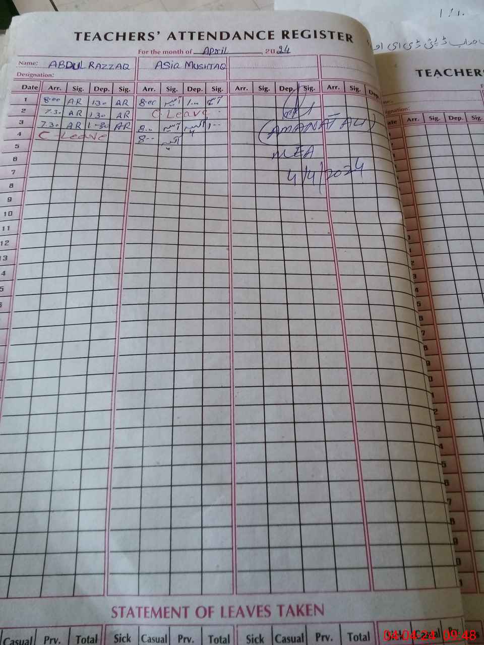 | 35**** | Ya**** Ak**** | PST | Regular | 0 | 0 | 0 | 0 | 0 | 0 | 0 | 0 | 0 | Exam Duty |