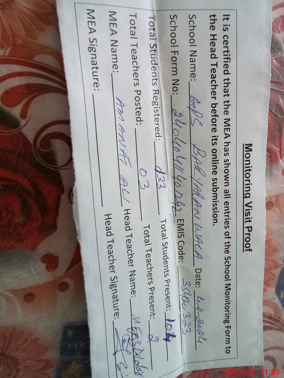 | EMIS Code: 35430323 | Name of School: GPS BARYARN -WALA | |||