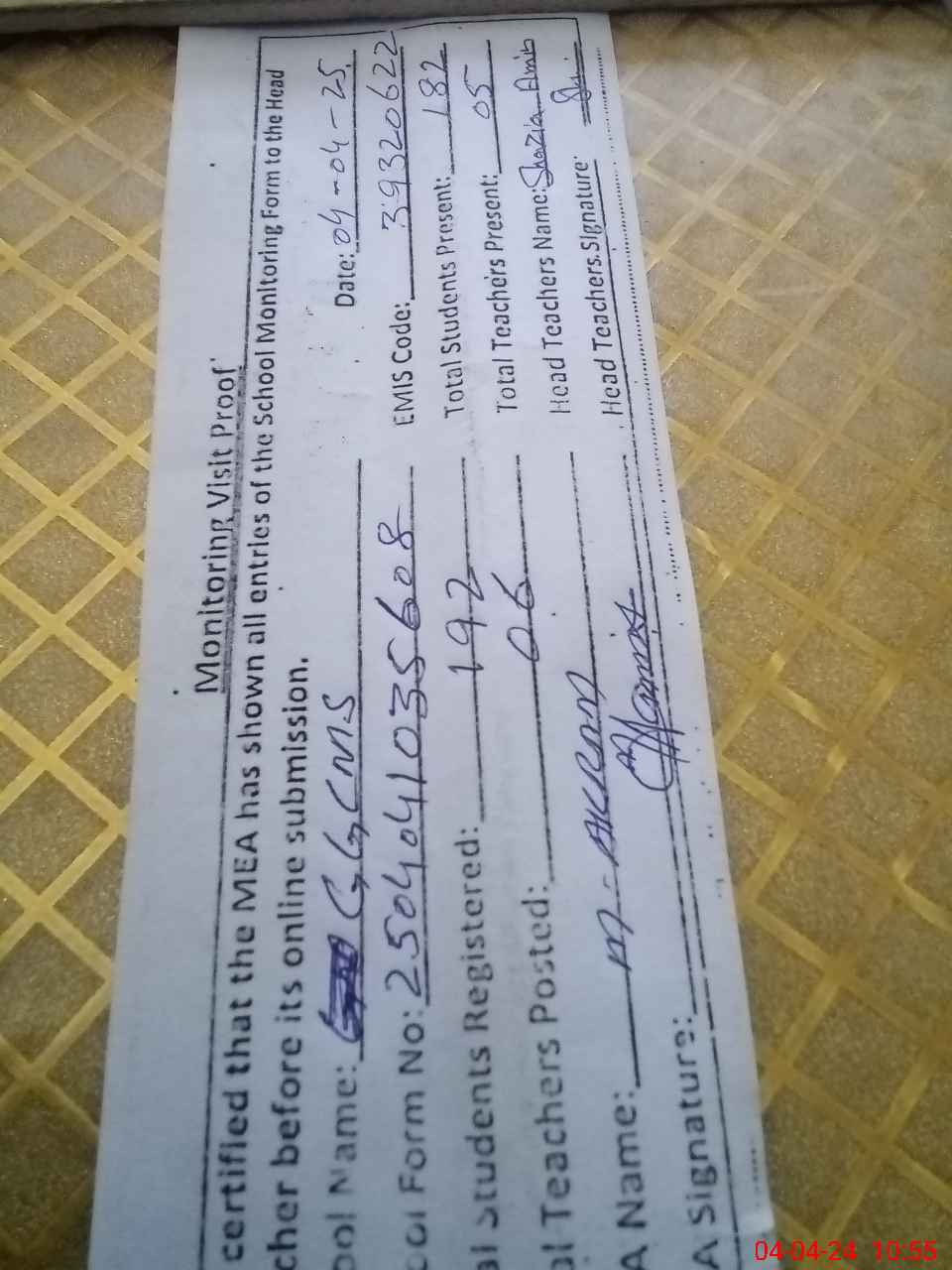 | Certified that this School was Inspected by the Undersigned MEA/DMO Today and the Information Stated Above is as Per Record. | |||||