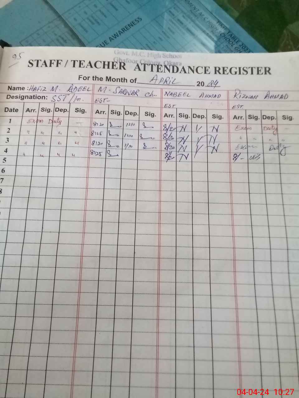 | 35**** | Ha**** Mu**** Ad**** | 5 | 1 | 0 | 0 | 0 | 0 | 0 | 0 | 0 | 0 | 0 | Exam Duty |