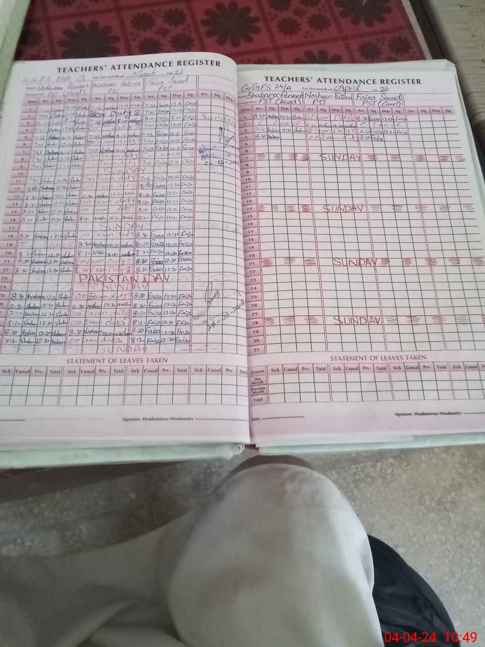 | Leave | Duty | Absent | Maternity | Medical | Ex- Pak |