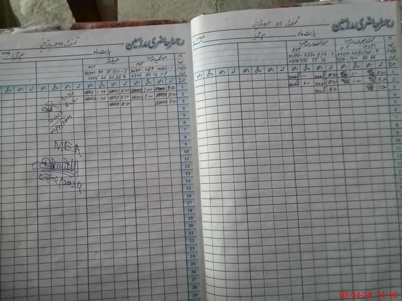 | CNIC | Full Name | Designation | R/C | Absence During Last Calender Month |